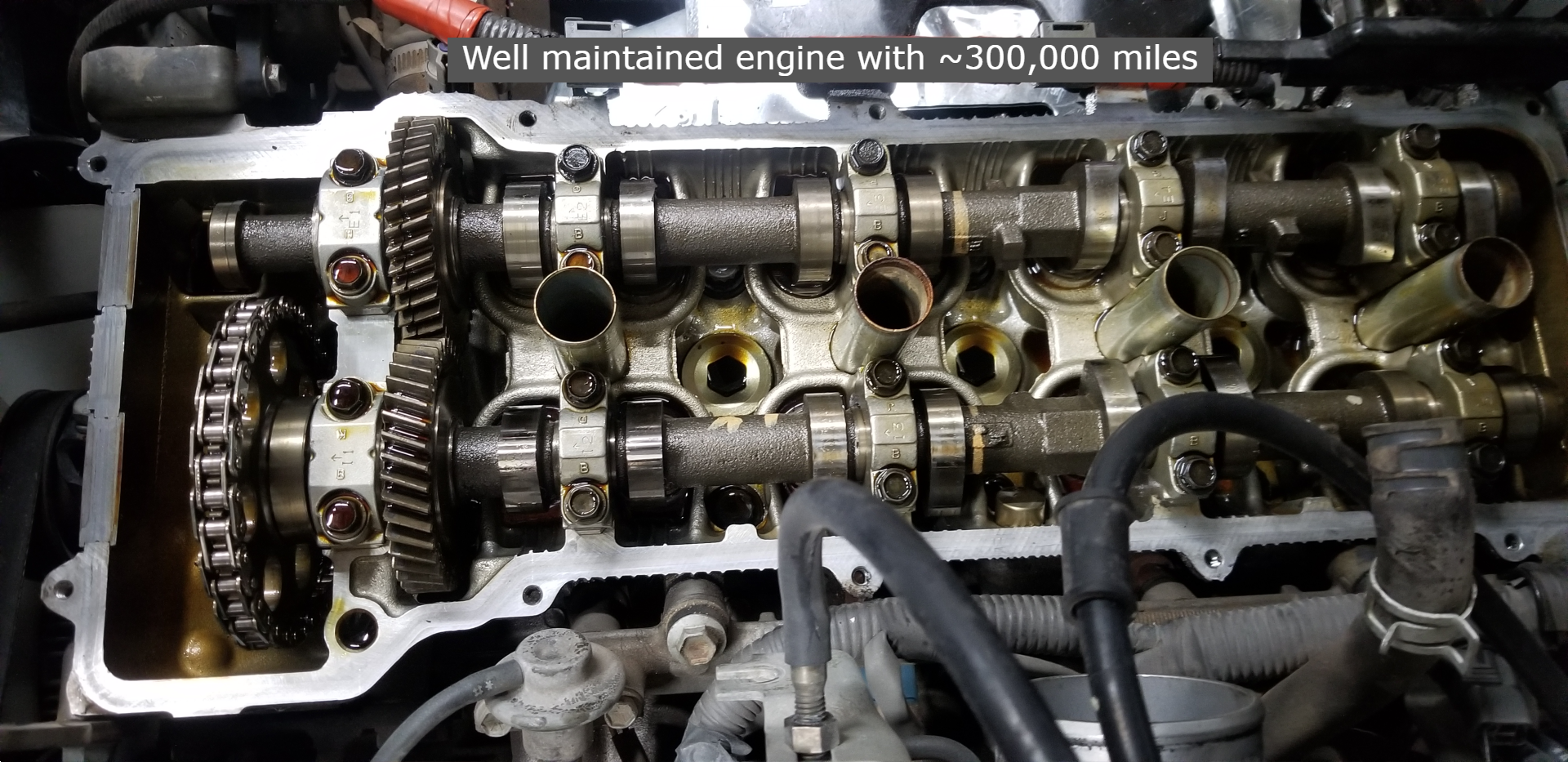 The inside of an engine